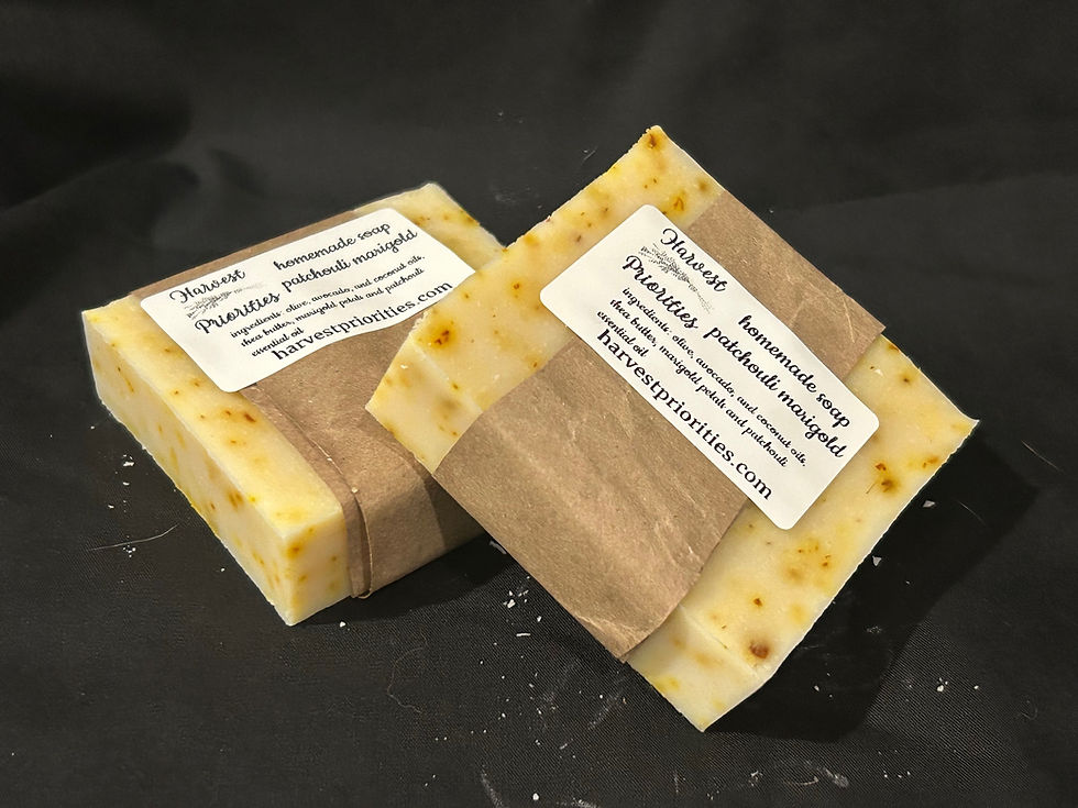 All soaps are handmade with love and organic, all-natural ingredients. Herbs are grown in our garden and added for scent and aesthetics. Based on ingredients, some soaps lather and produce a more bubbly effect than others. Tallow soap does not bubble as much but leaves your skin feeling silky smooth.